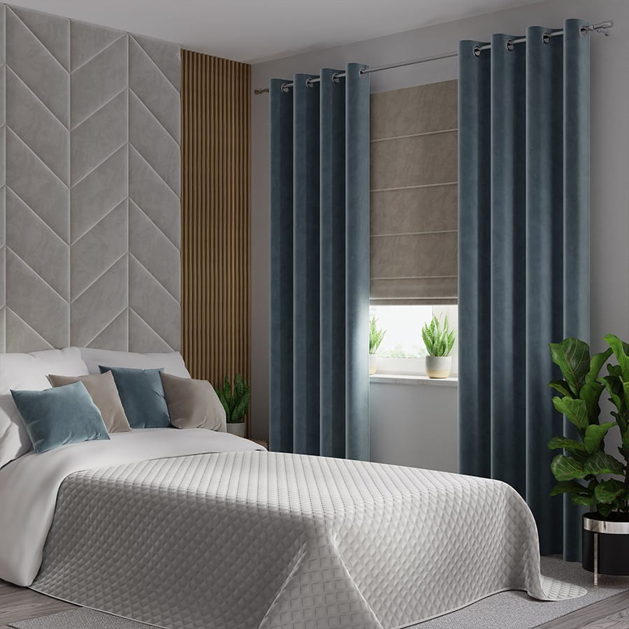 Zasłona Welurowa 140x250 Zasłona Gotowa na Przelotkach Welur Niebieska