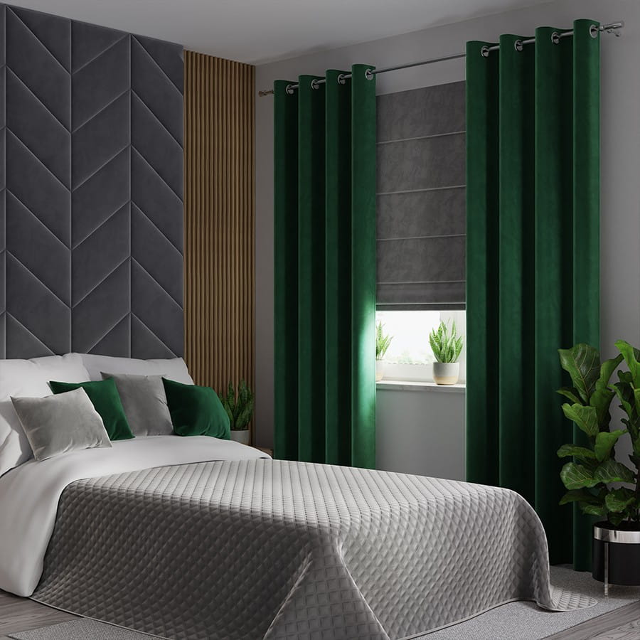 Zasłona Welurowa na Przelotkach 140x240 Zasłona Gotowa Welur Butelkowa Zieleń