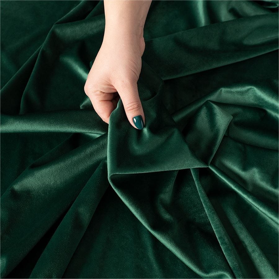 Zasłona wykonana z miękkiej, lejącej tkaniny welurowej z delikatnym meszkiem.