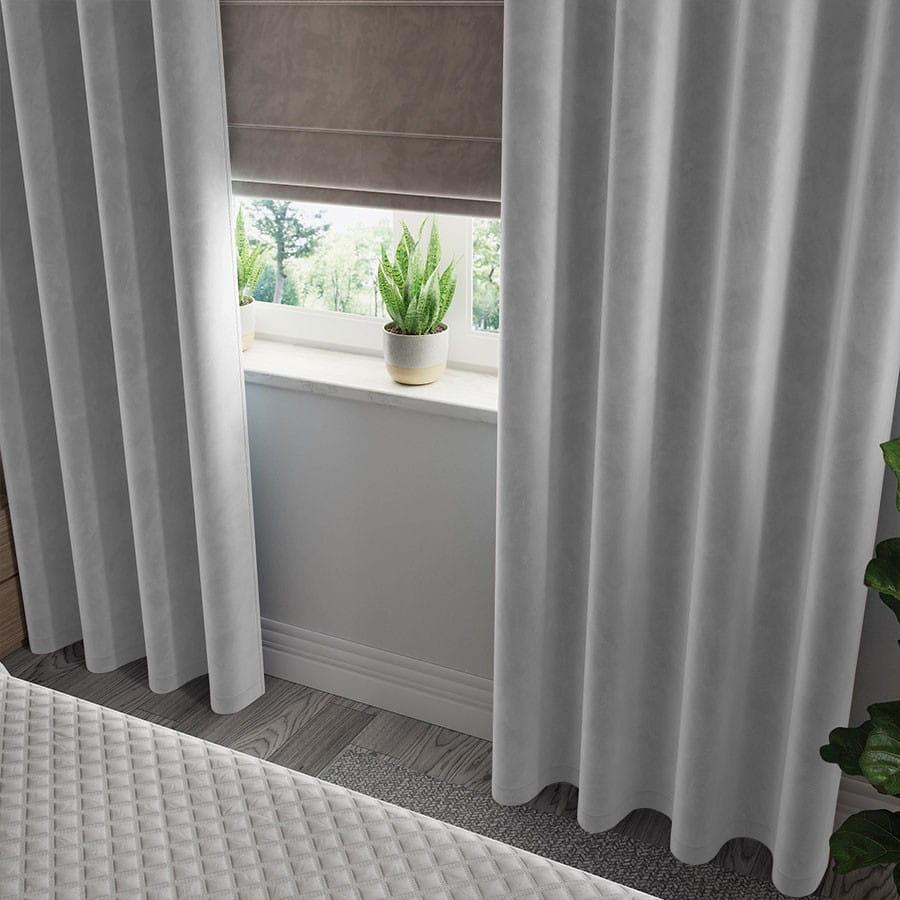 Zasłona wykonana z miękkiej, lejącej tkaniny welurowej z delikatnym meszkiem.