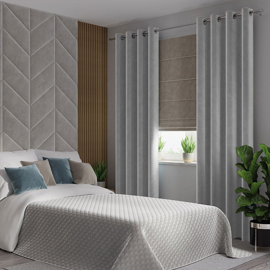 Zasłona Welurowa na Przelotkach 140x240 Zasłona Gotowa Welur Chłodna Szara