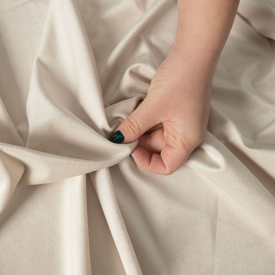 Zasłona wykonana z miękkiej, lejącej tkaniny welurowej z delikatnym meszkiem.