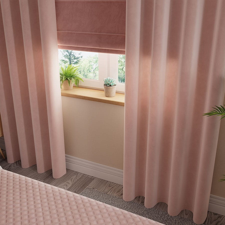 Zasłona wykonana z miękkiej, lejącej tkaniny welurowej z delikatnym meszkiem.