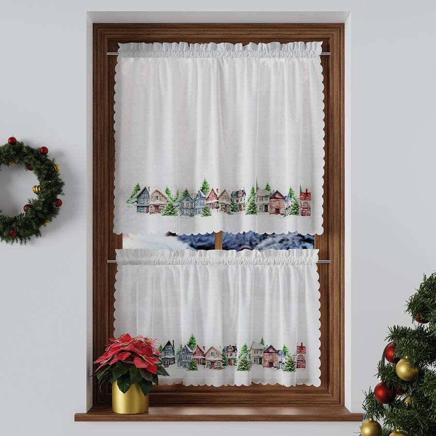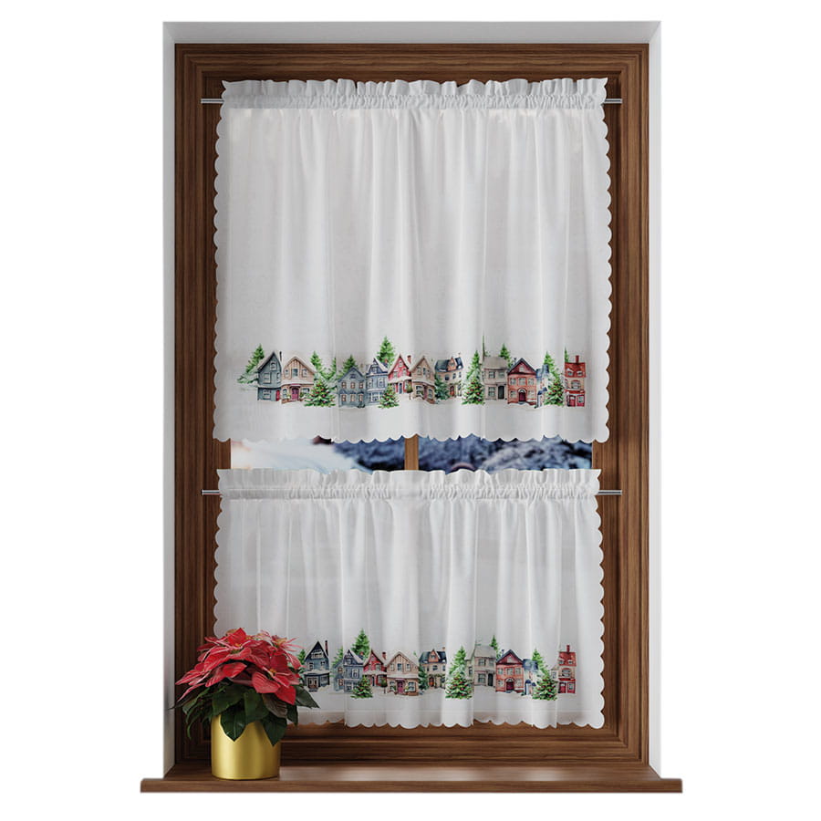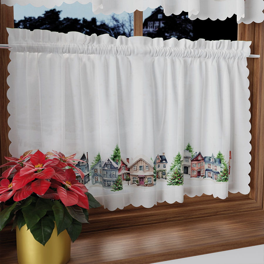 Zazdrostka Świąteczna 100x40 Firanka Gotowa Krótka Zimowe Miasteczko