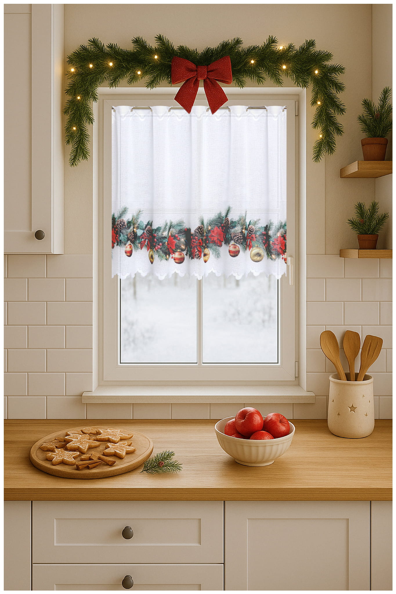 Zazdrostka Świąteczna 100x70 Krótka Gotowa Firanka do Kuchni Girlanda