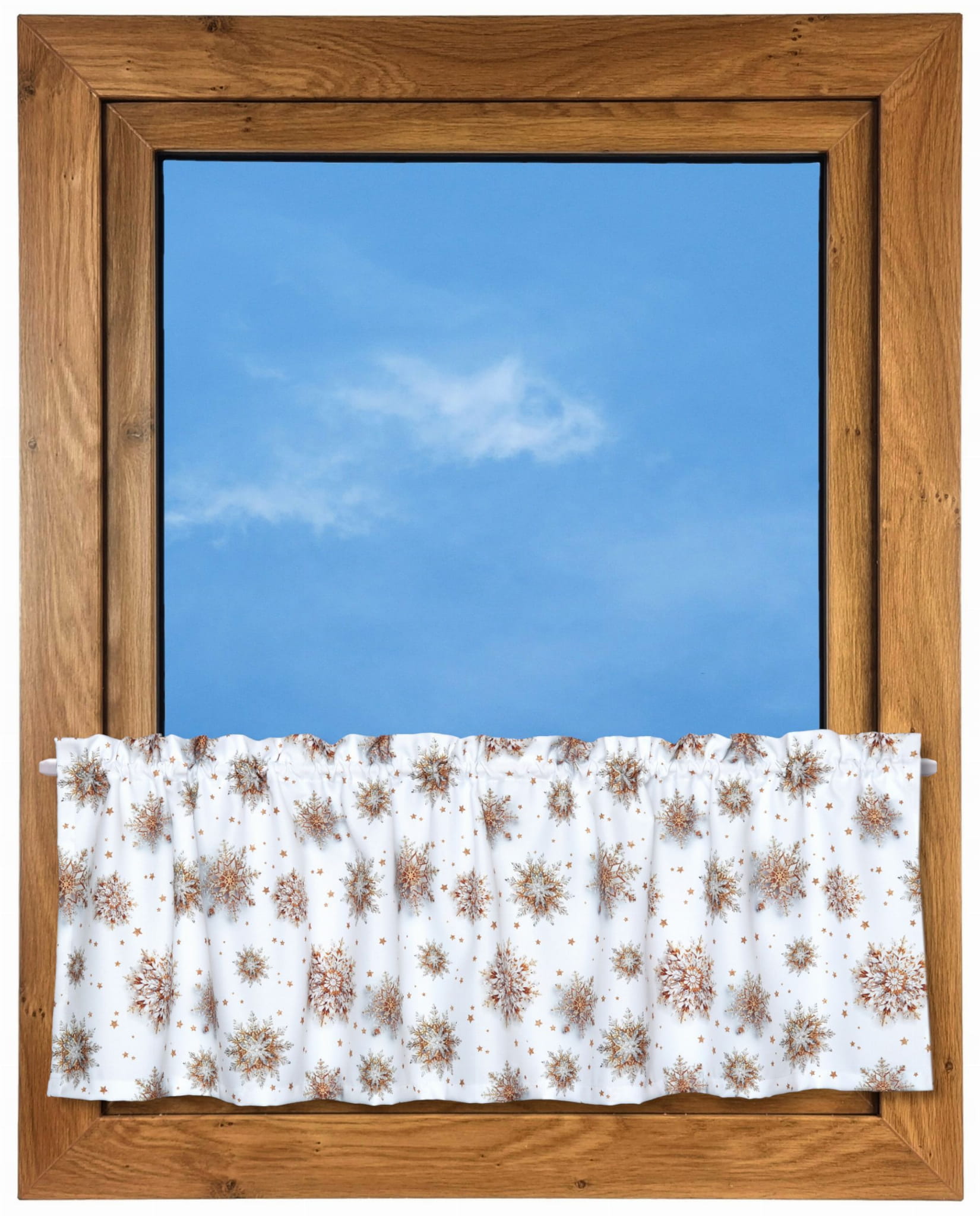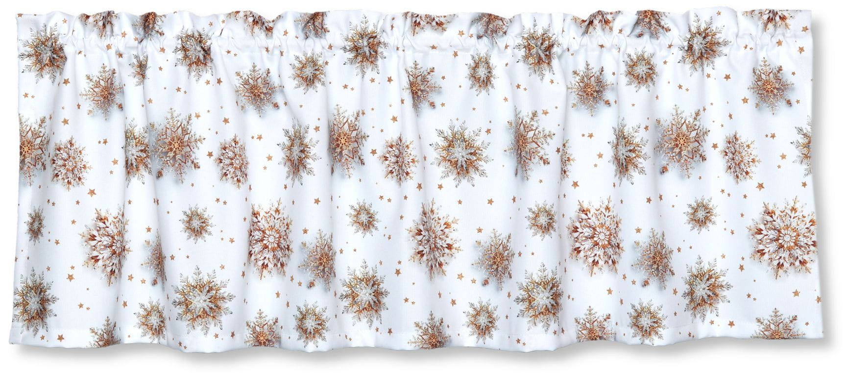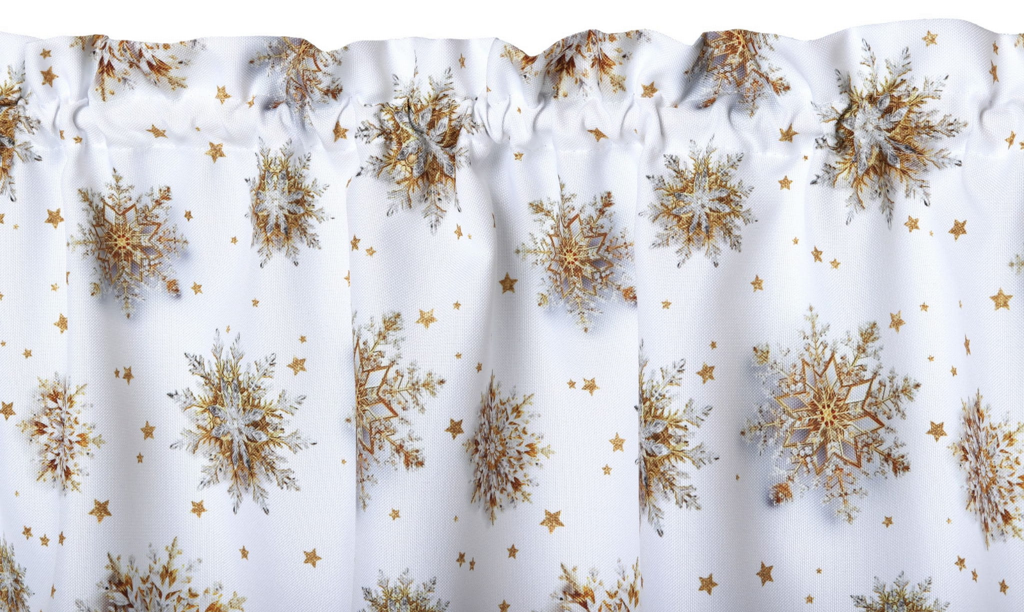Zazdrostka Świąteczna 150x40 Krótka Firanka Gotowa Śnieżynki Złote 9558