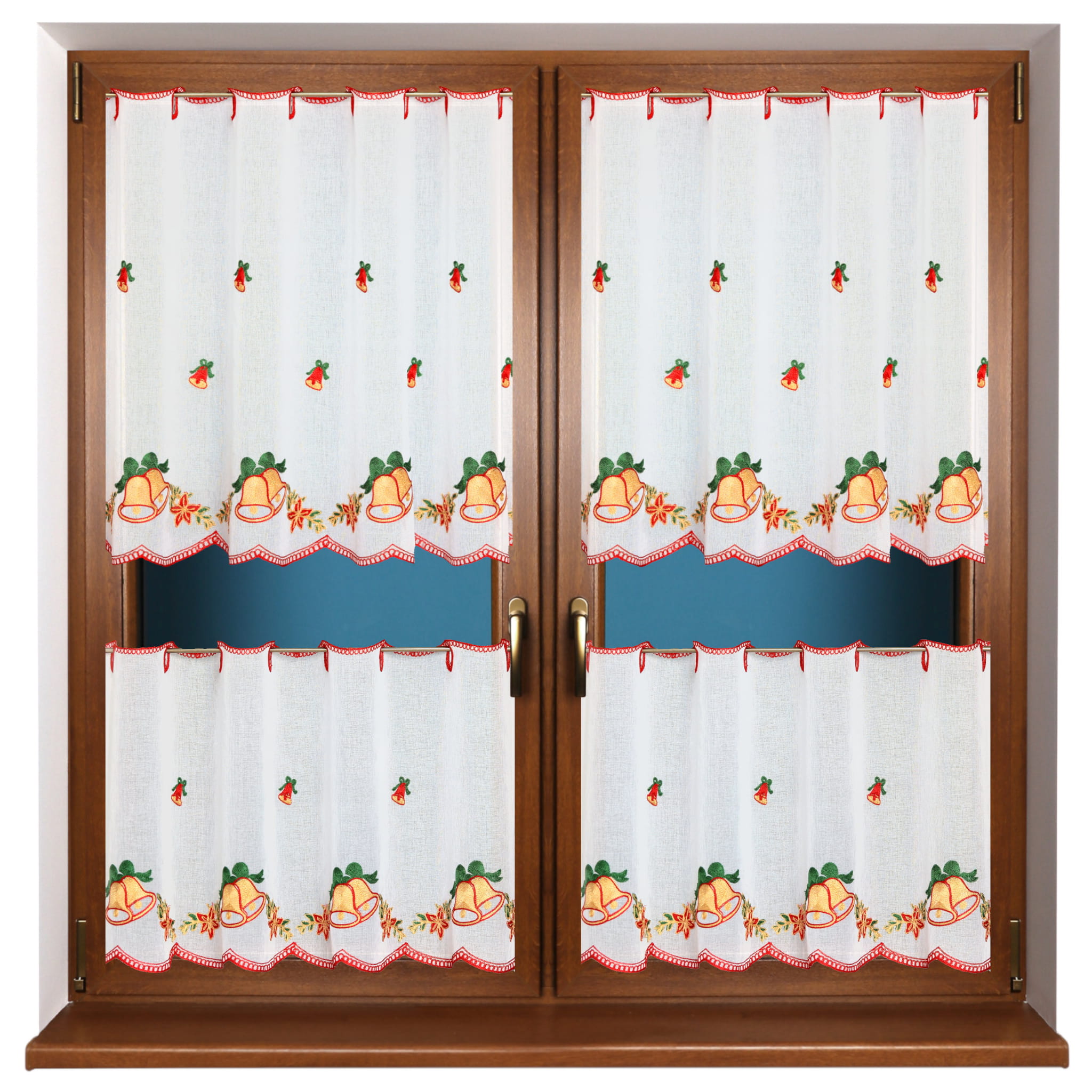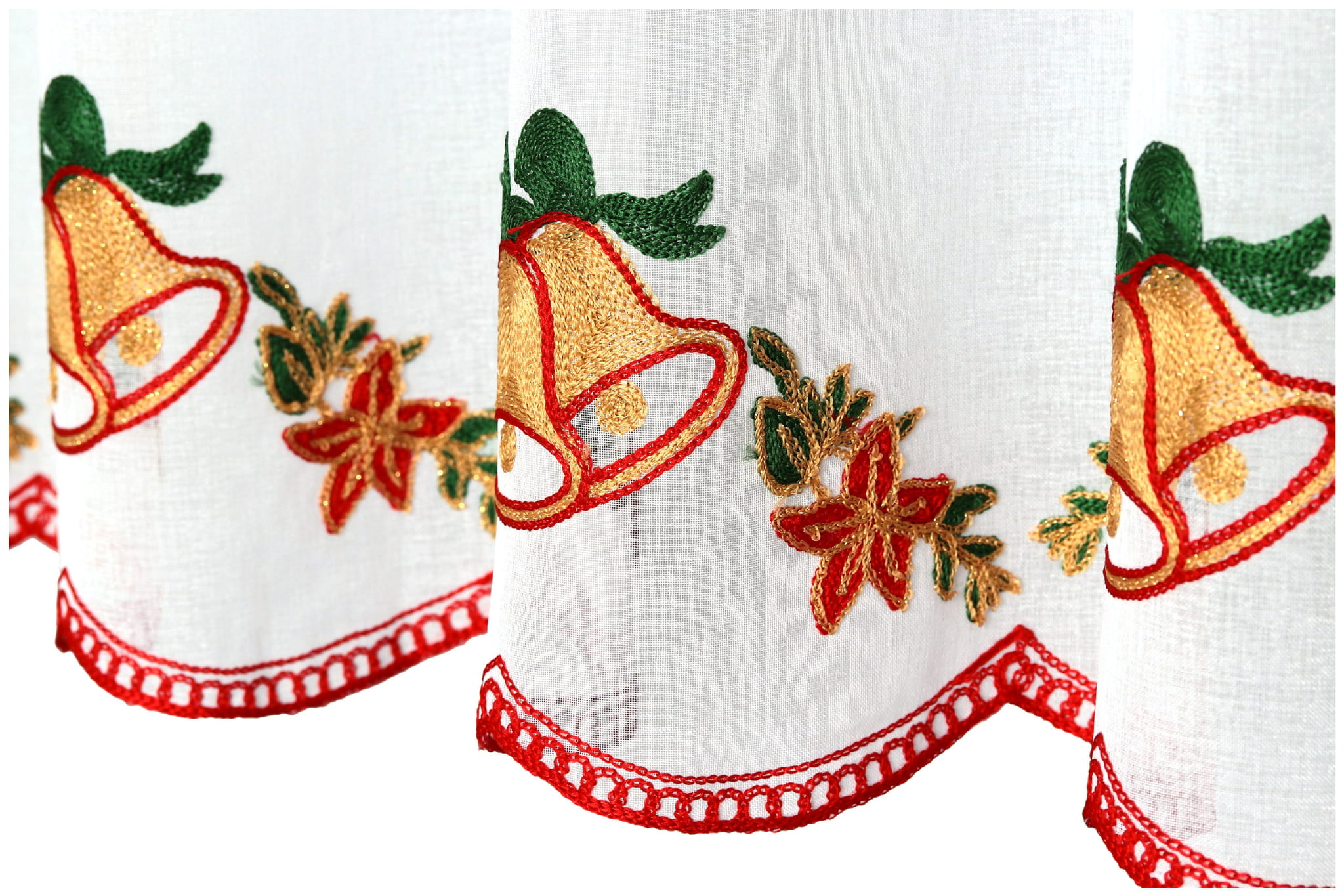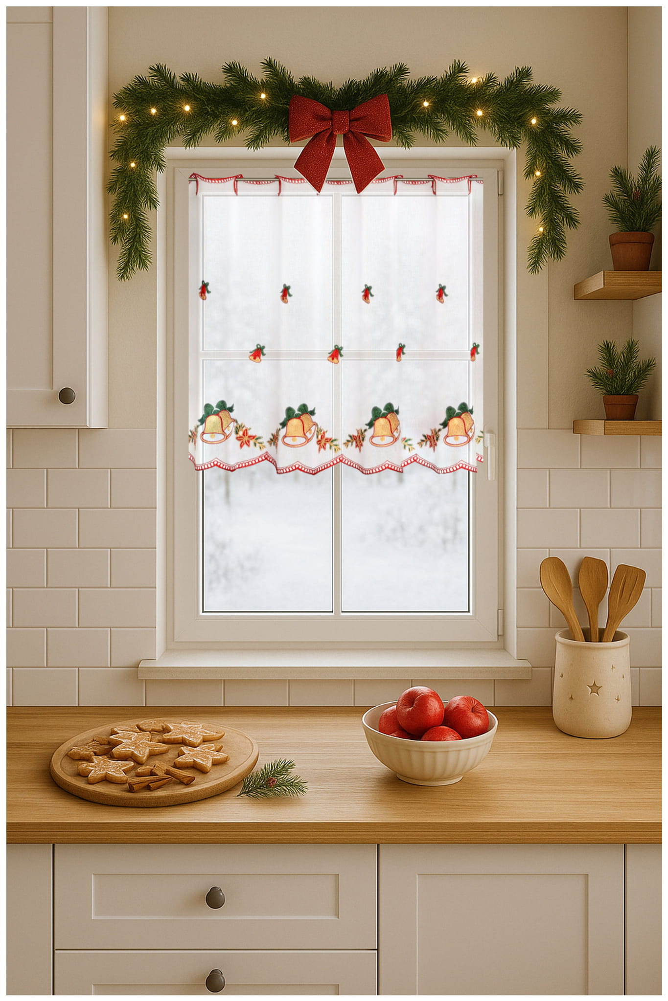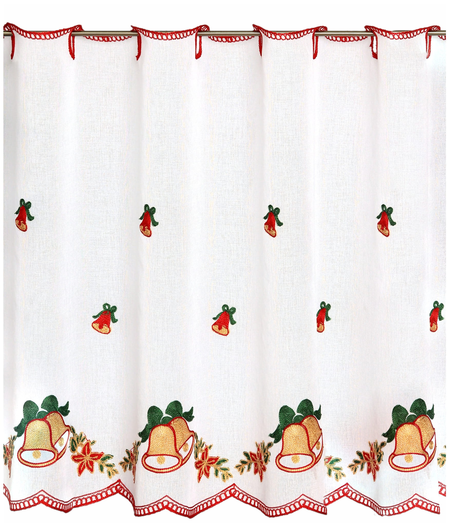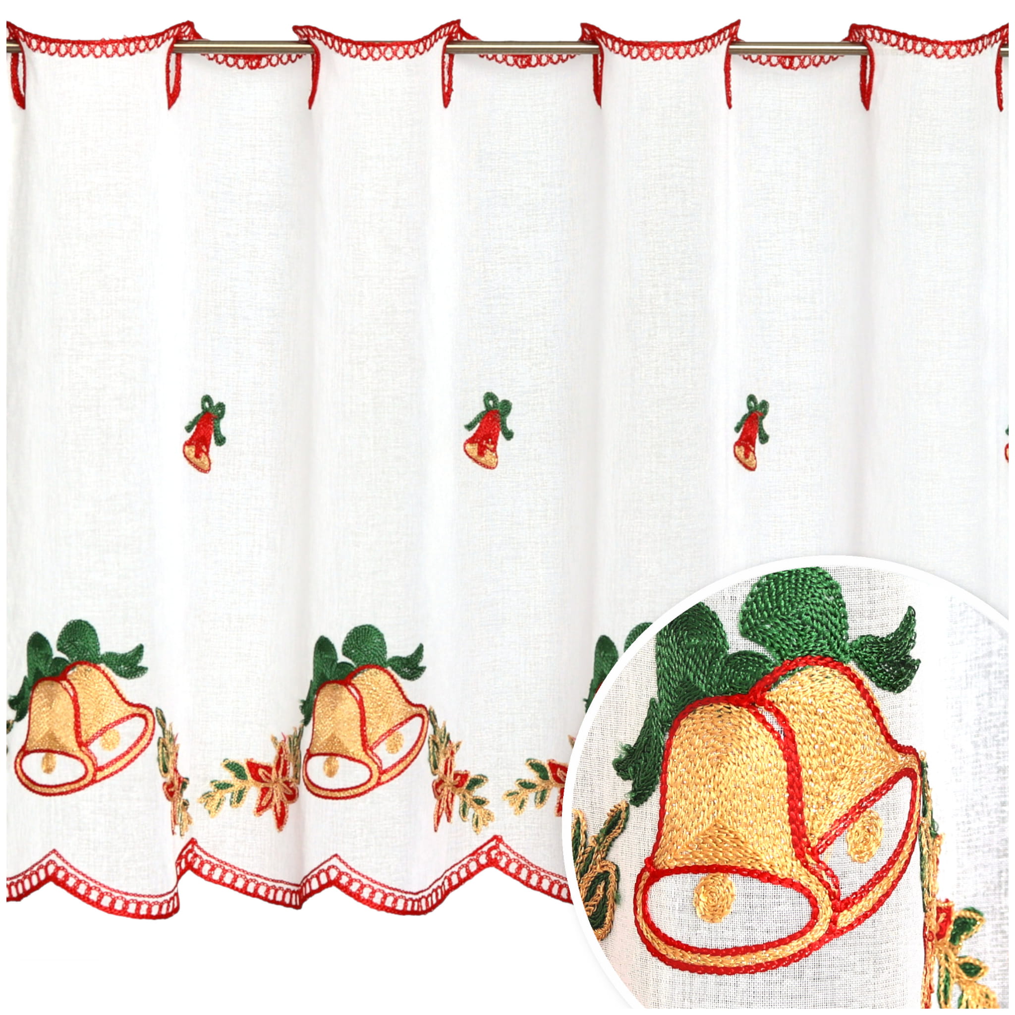 Zazdrostka Świąteczna Haftowana 110x70 Krótka Firanka Zazdrostki do Kuchni Dzwoneczki