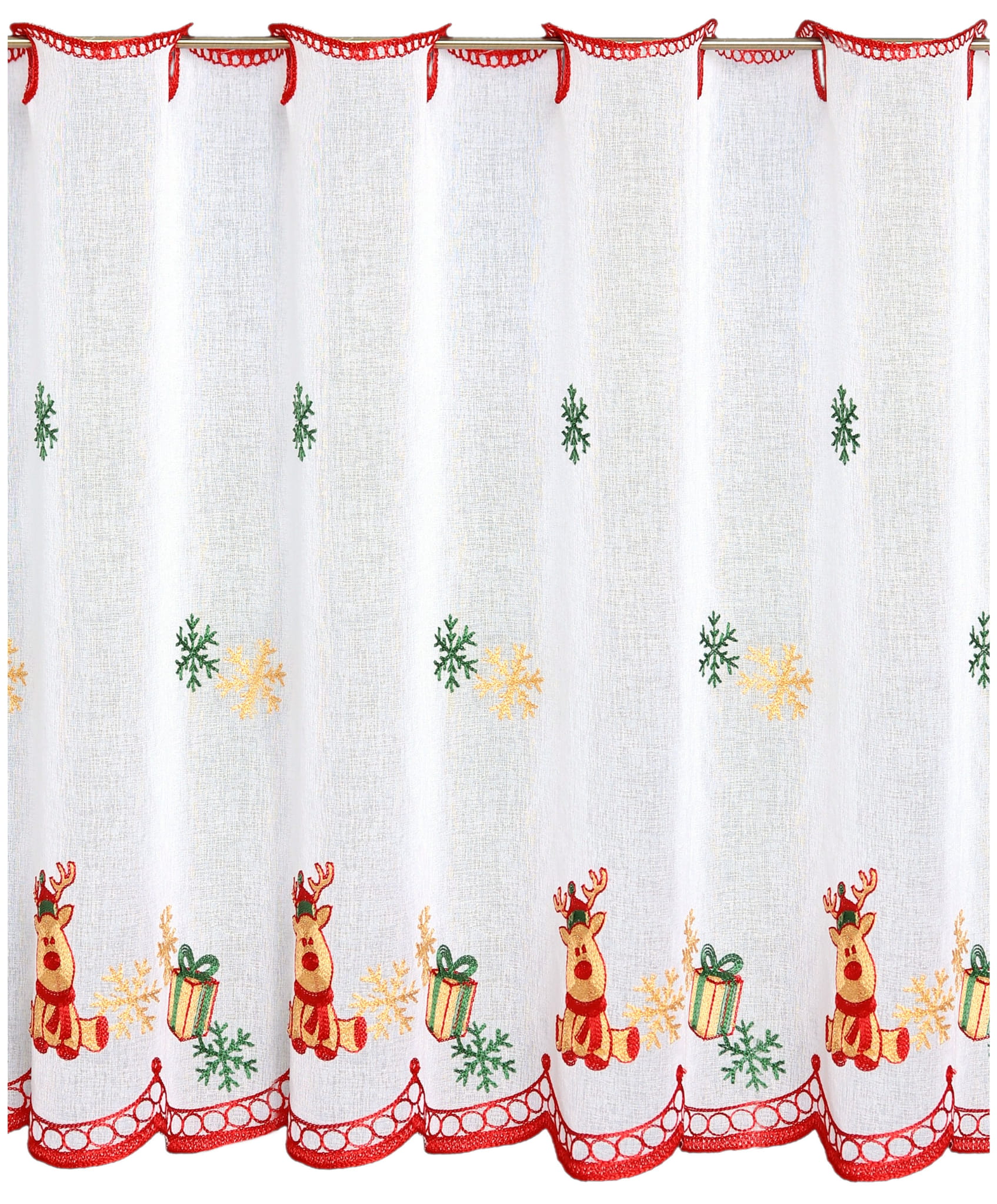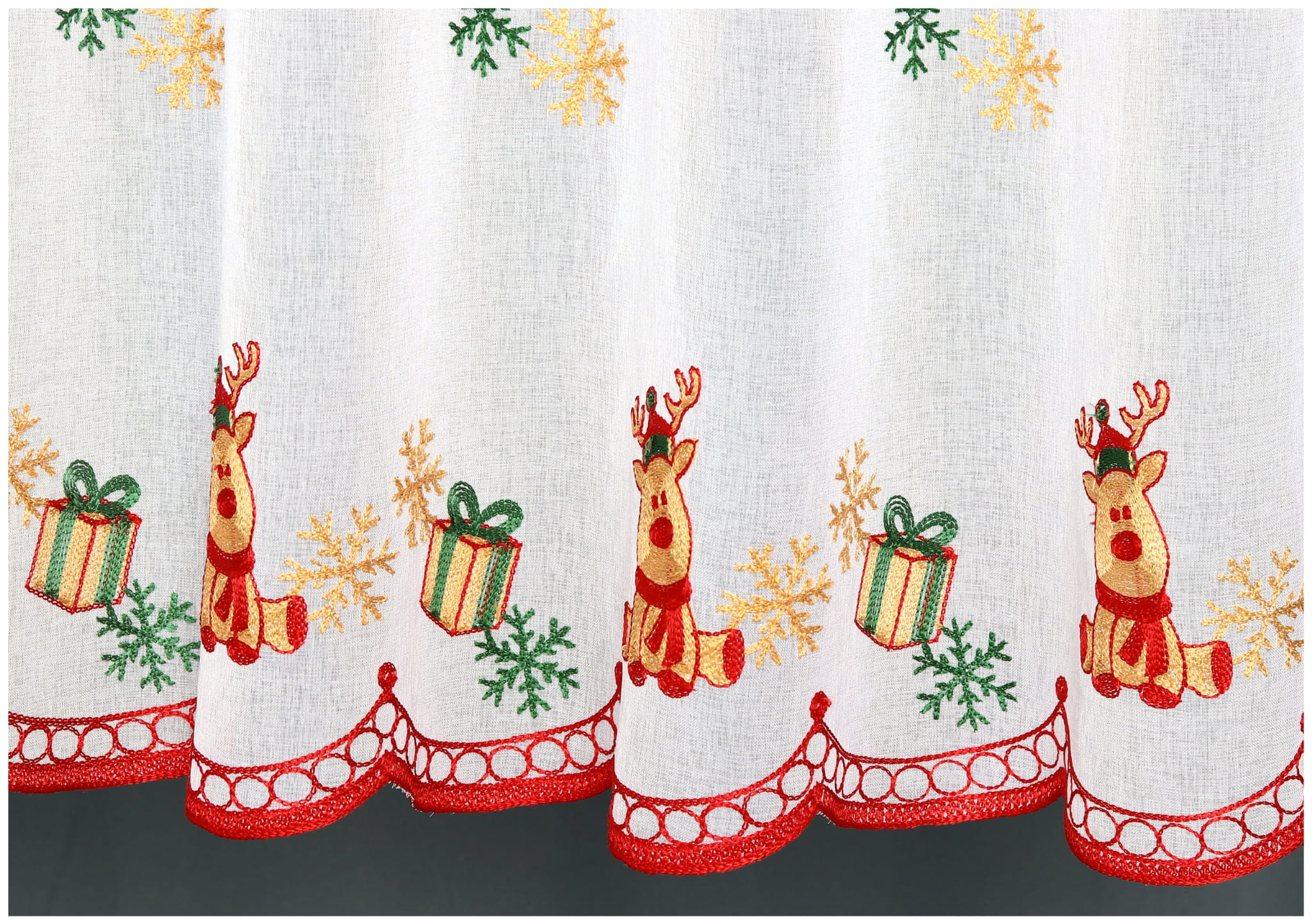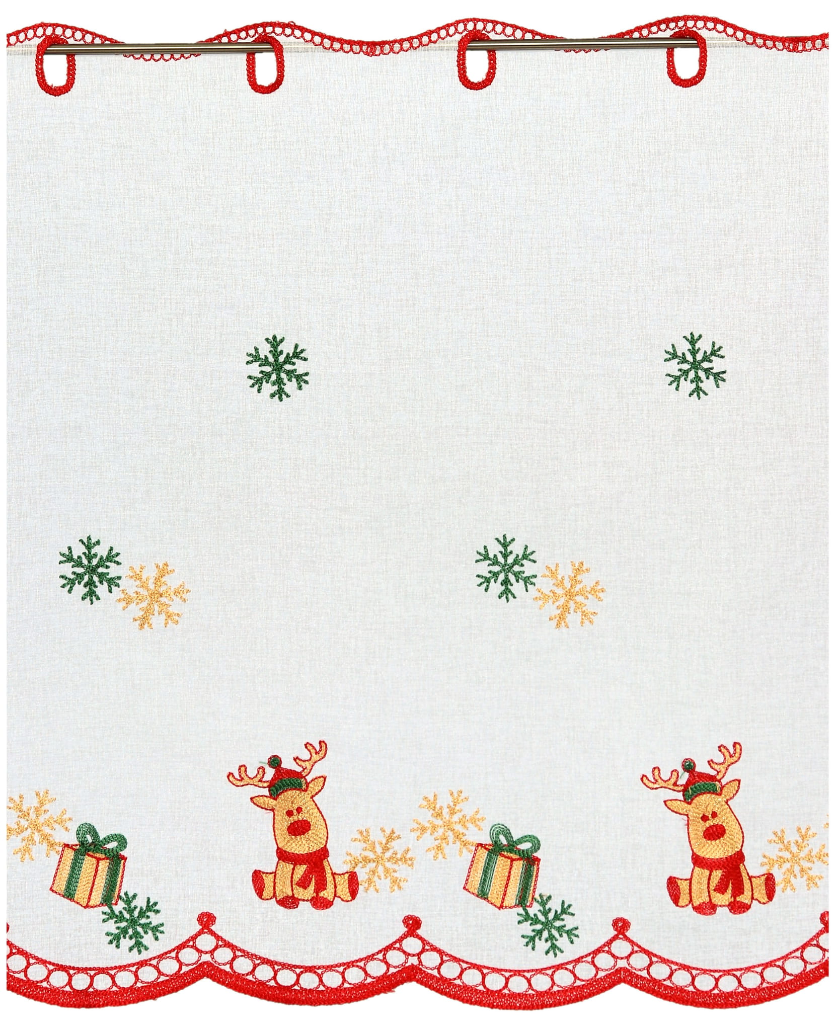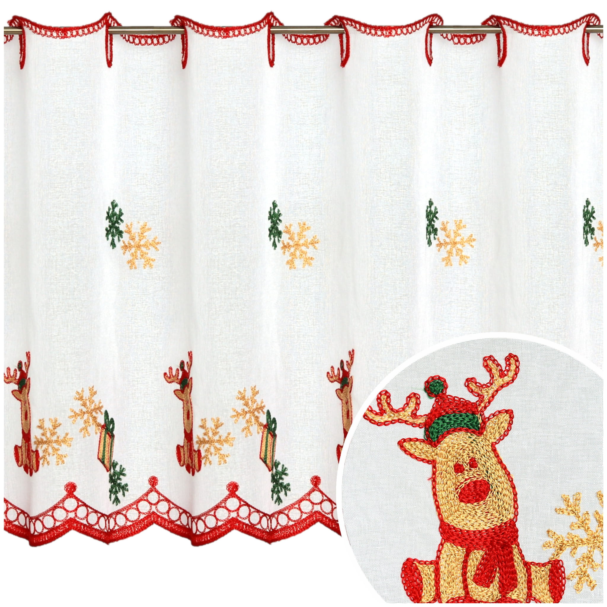 Zazdrostka Świąteczna Haftowana 110x70 Krótka Firanka Zazdrostki do Kuchni Reniferki