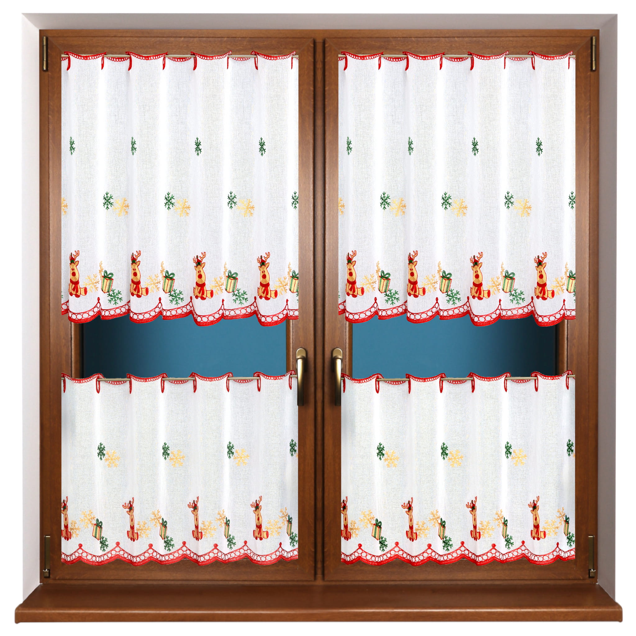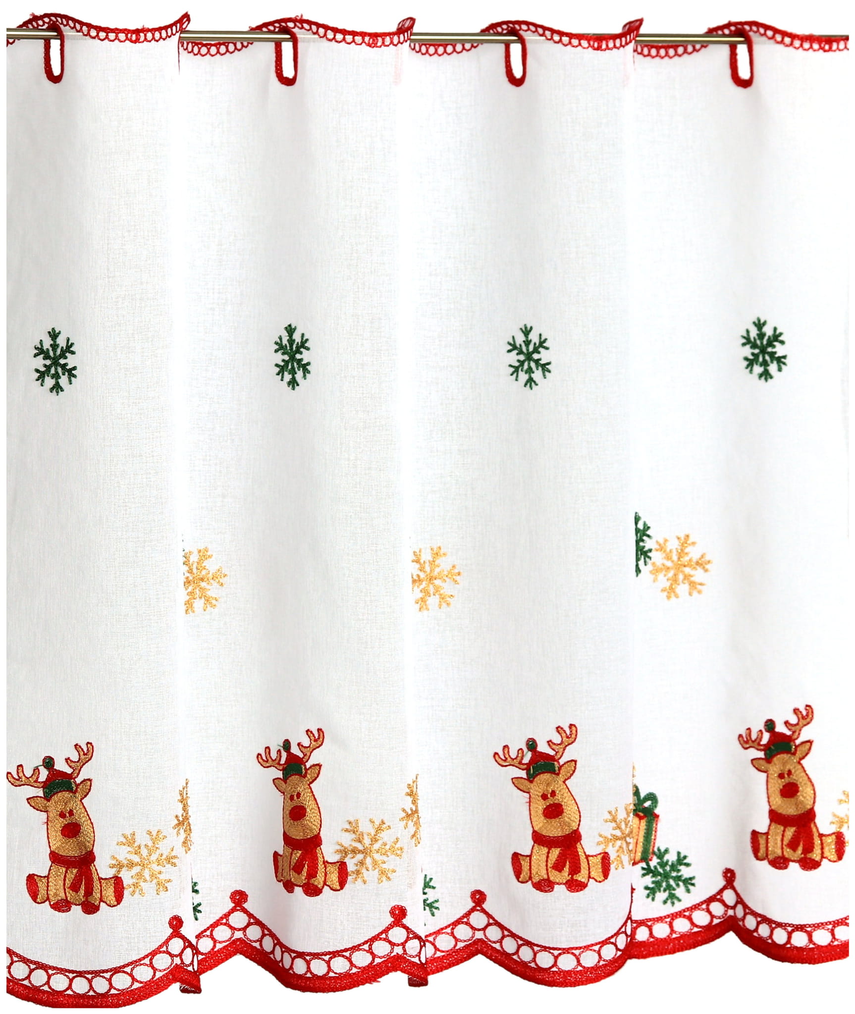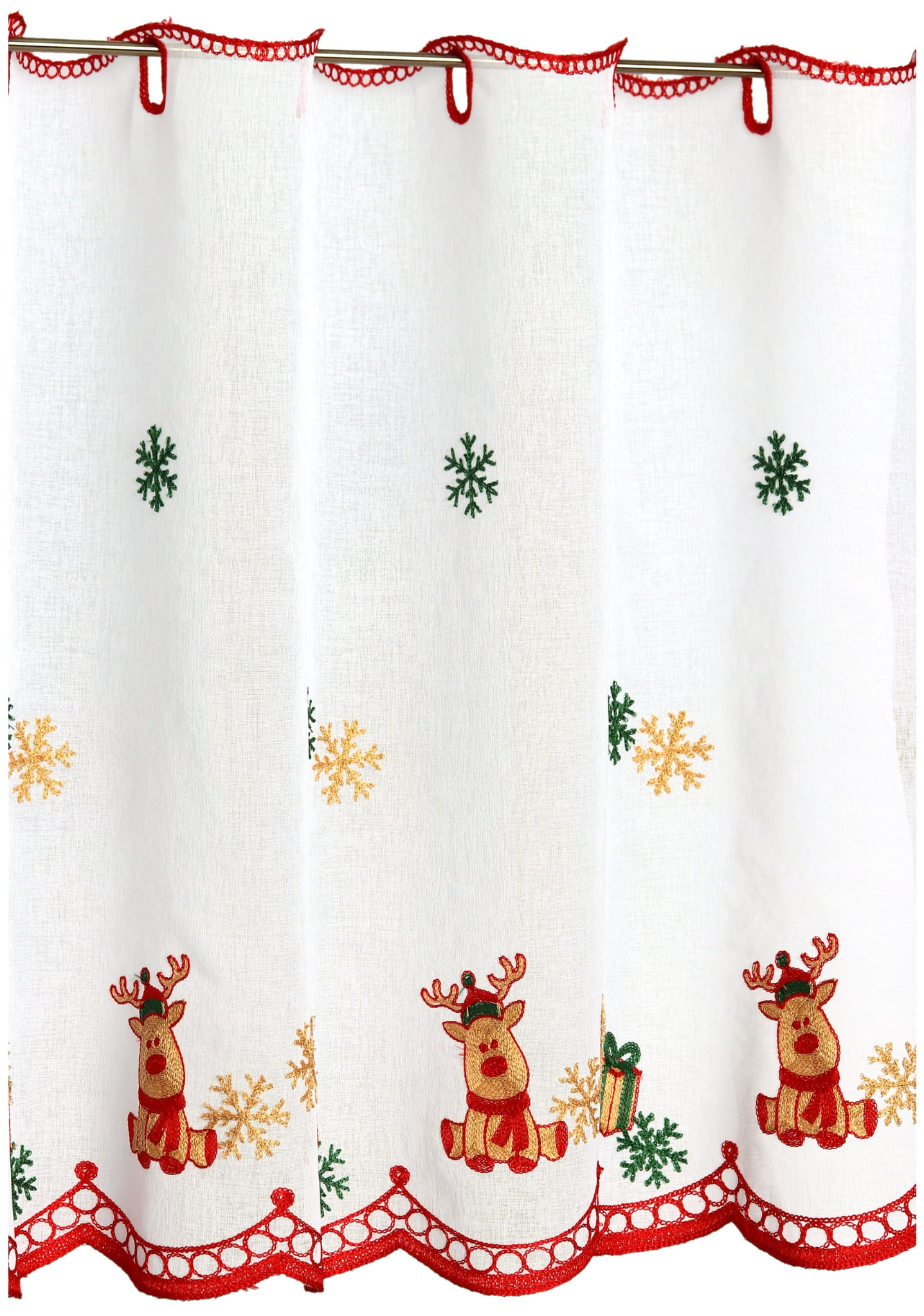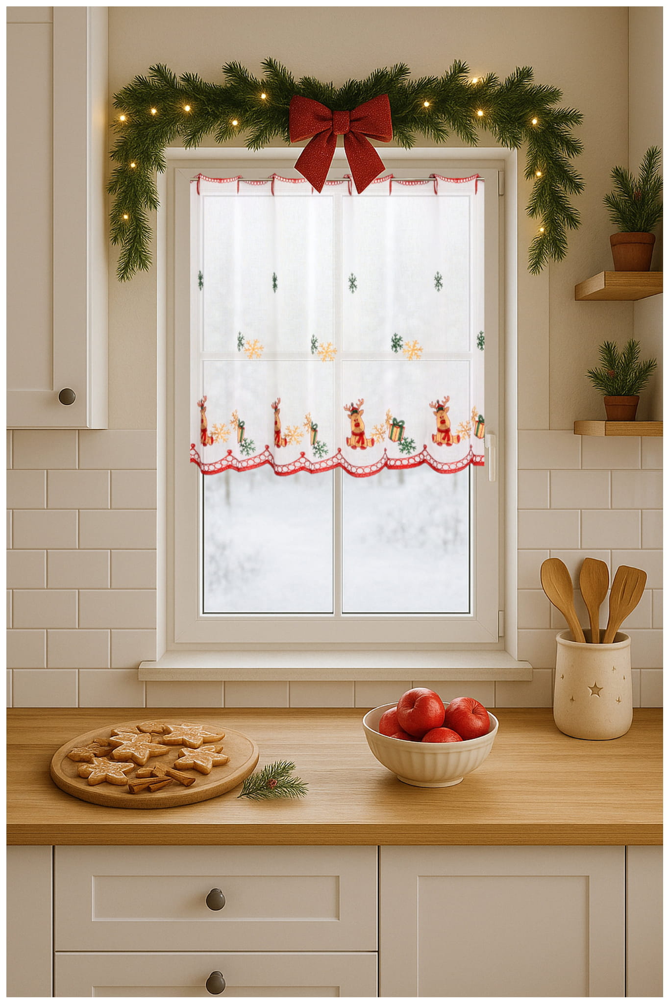 Zazdrostka Świąteczna Haftowana 110x70 Krótka Firanka Zazdrostki do Kuchni Reniferki
