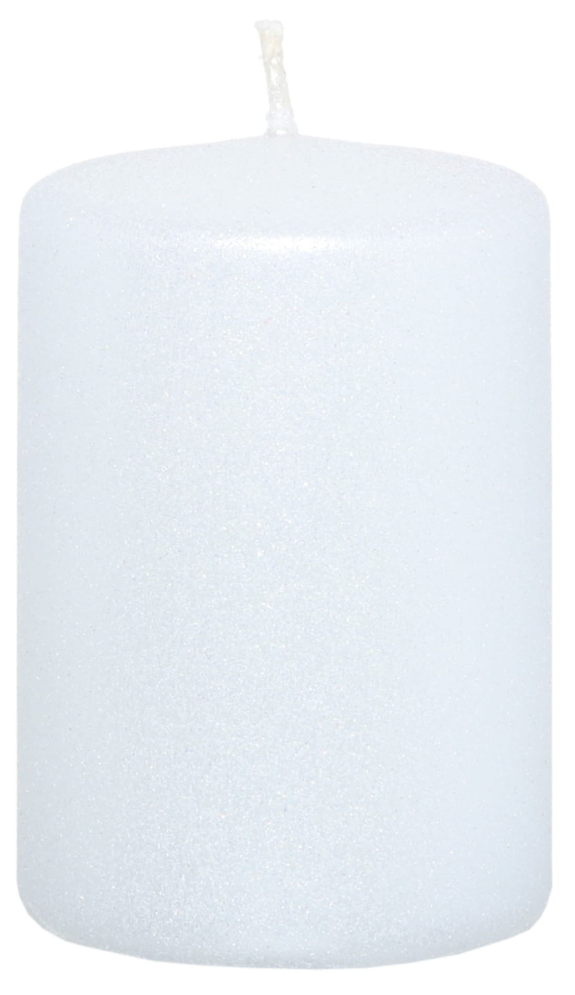 1x świeca biała brokatowa 8,5x5,5cm