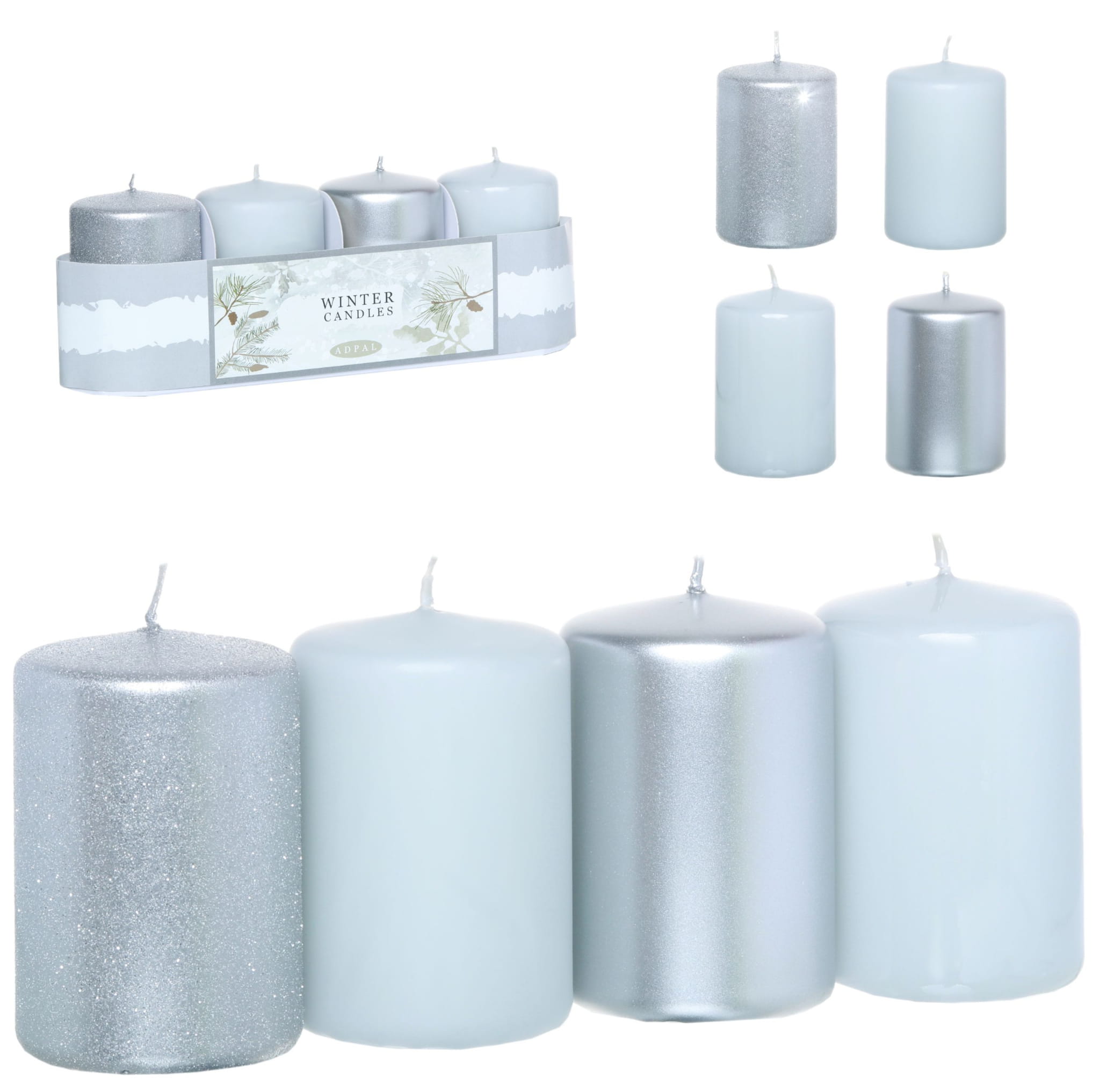 Zestaw Świeczki Świąteczne 4szt Świeczki do Stroika i na Stół Srebrne